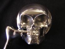 OMINOUS 3-D SKULL MIRRORS. SKULL IS MADE OUT OF HIGH POLISHED SOLID ALUMINUM, WITH 3" MIRROR AND 6" STEM. THEY FIT ALL HARLEY -DEVIDSON MODELS FROM 1965 TO PRESENT AND FEATURE THREADED STEMS THAT COMES COMPLETE WITH ALL HARDWARE.